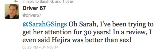 This is what I said, in reply to @SarahGSings, who wants to be noticed by Joni Mitchell: